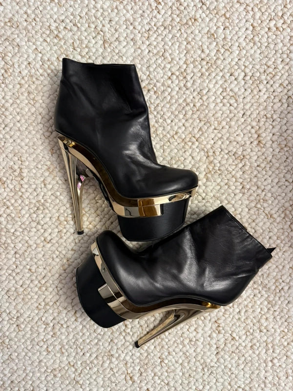 VERSACE BLACK LEATHER TRIPLE PLATFORM BOOTIE - EU 40
